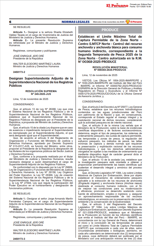 পেরুভিয়ান ইনস্টিটিউট অফ মেরিন রিসার্চ (IMARPE) দ্বারা প্রকাশিত কঠোর বৈজ্ঞানিক প্রতিবেদনের ভিত্তিতে এই সিদ্ধান্তটি আনুষ্ঠানিকভাবে মন্ত্রী পর্যায়ের রেজোলিউশন নং 00368-2025-উৎপাদনের মাধ্যমে প্রতিষ্ঠিত হয়েছিল।